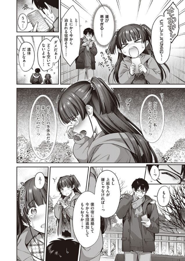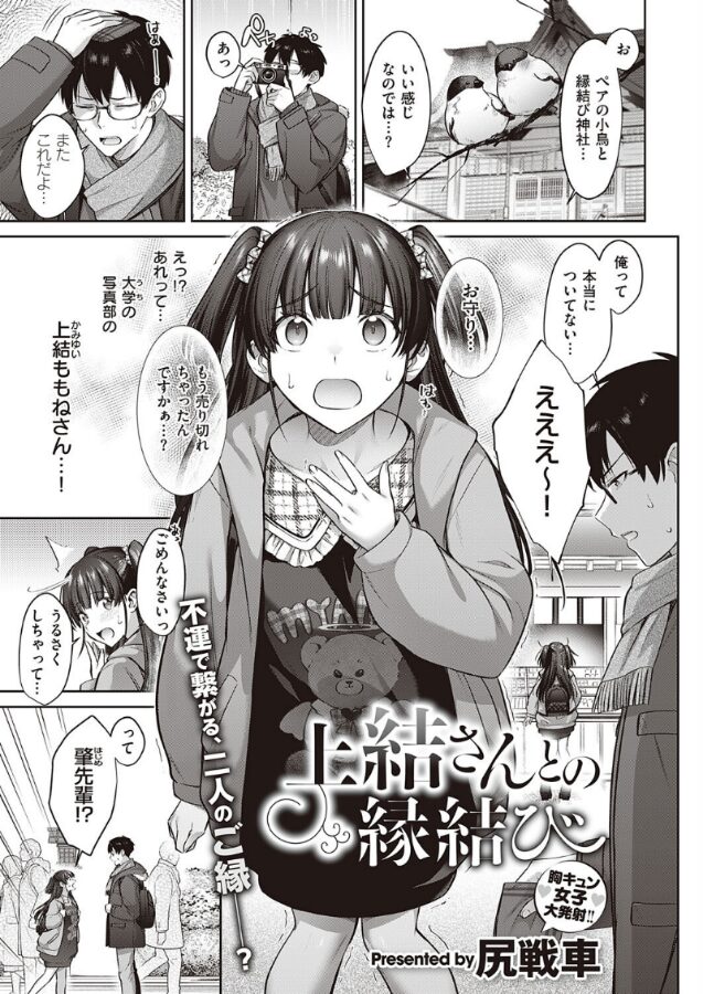 肇は旅行先の神社で不運な巨乳な後輩・ももねにばったり遭遇!早速宿泊する予定の宿が燃えたと言う不運すぎる彼女に、肇は自分の宿に泊まればいいと提案する!お礼に背中を流すと言うももねに押されてお風呂まで一緒に入浴することに肇。しかしタオルを巻いてもわかるももねのオトナな身体に耐えかねて、ももねに無防備だと注意すると「触ってもいいんですよ?」と予想外の回答をされてしまい――!?胸キュン女子メーカー・尻戦車先生が描く、巨乳JDとのアンラッキーから始まるハッピーH♪