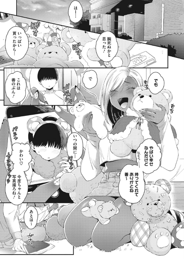 晴れて恋人になった善とりなちゃんの遊園地デート。帰りに家でお土産を開けていると、善がある物をりなちゃんにプレゼントする。それはお揃いのクマのキーホルダー。お金が足りず、りなちゃんが渋々諦めていた物だ。大好きな善からのプレゼントにりなちゃんは喜びを隠せない。いい雰囲気になった二人は自然と……。
