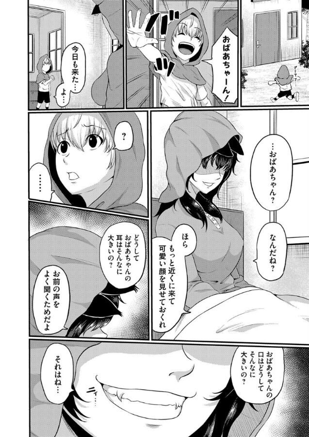 昔話テラー・高代硝石の描く巨乳獣人壁尻わからせ読み切り!!「可愛い赤ずきんを食ってやるのさ!」メスオオカミは巨乳と、ホットパンツによるブリンブリンの下半身を露出しながら、おばあちゃんが出ていくのを確認し、家に忍び込んだ。おばあちゃんの服を着てなりすまし、待つのは可愛い可愛い赤ずきん(男)!「おばあちゃーん!」と楽しみで仕方なかったかのように遊びに来た赤ずきんはおばあちゃんの様子がいつもと違うことに気づく。「どうしておばあちゃんの耳はそんなに大きいの?口はどうしてそんなに大きいの?」「それは…お前を食べるためだ!」若い肉を食いちぎろうと、逃げる赤ずきんを追いかけるが、追いかけっこ中にメスオオカミは窓枠に綺麗にハマって動けなくなってしまった…!意図せぬ壁尻状態に困惑するメスオオカミ。優しい赤ずきんはお尻を押し出して助けてあげようとするが、指が次第にイイトコに当たってしまい…?