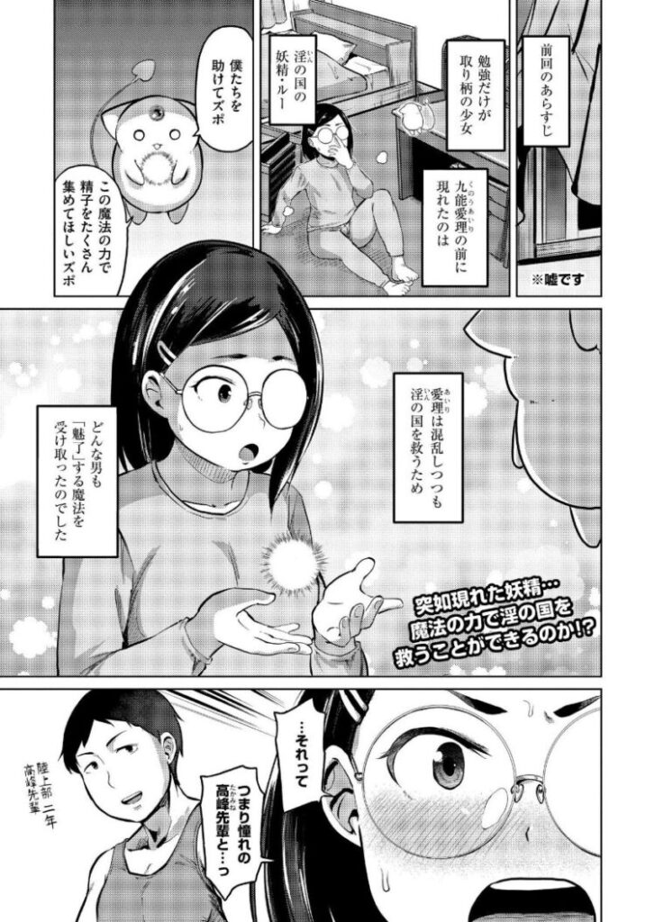 淫の国の妖精・ルーから、魅了の魔法を授けられた「愛理」。メガネを外して目を合わせれば、どんな男をも魅了できるという。この力を使って、愛理は淫の国を救う…のではなく、憧れの先輩・高峰を魅了するために学校へ向かう!しかし、高峰と出会うまでにたくさんの男が愛理の前に立ちはだかり…!