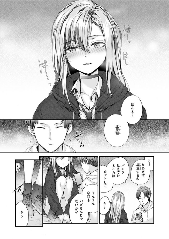 「ちょっとはエロいって思ってたんだ」SNSのダンス動画を撮影中の響(ひびき)とその彼氏・比屋根(ひやね)。もう少し関係を先に進めたい響きは…ダンスの振りをエロくしてみたり、スカートを短くしてみたり……。彼氏の比屋根に女を意識をさせたい響。でも不器用なアプローチは比屋根にちゃんと伝わっていたようで……。