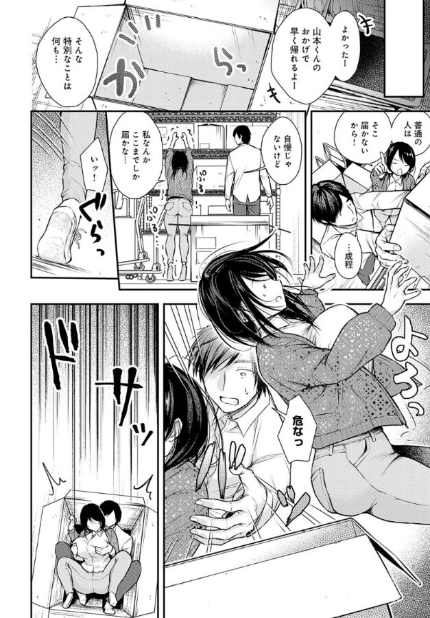 山本が密かに想いを寄せていたバイト先の先輩・近本さんはなんと既婚者だった(泣)心を入れ替えて作業に集中しようとする傷心モードの山本に降りかかるドスケベハプニングの数々! 思わず勃起した山本のチ●コを「これじゃ帰れないでしょ?」と玉まで舐めるねっとりフェラで落ち着けてくれる近本さん!さらには興奮の収まらない山本のチ●コを’ここじゃない場所’で慰めてくれる近本さんは、大人の余裕を感じる騎乗位で――!!たわわな年上お姉さんで堂々の商業デビュー・梅楓味先生の描く、素朴なムチムチ人妻と背徳よしよしSEX☆