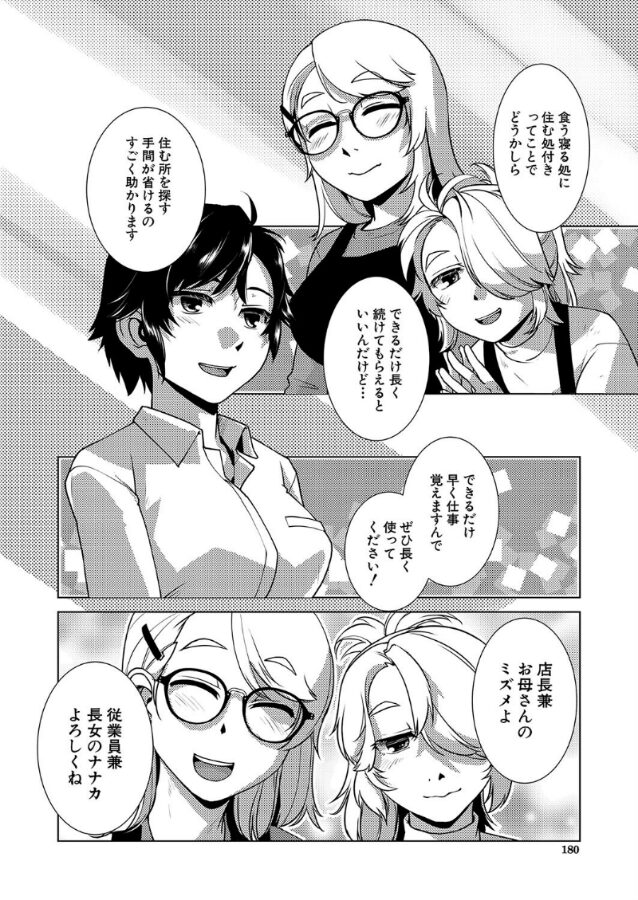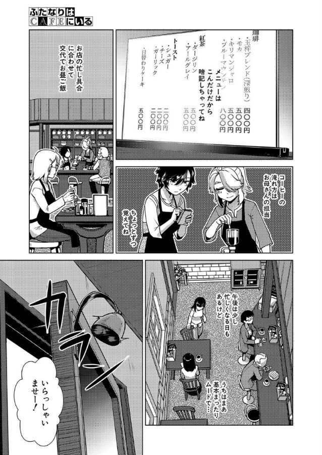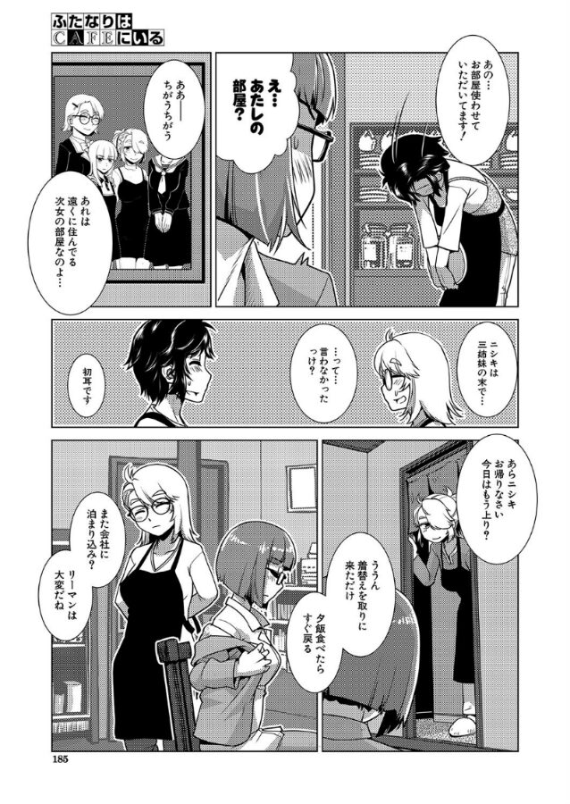 楸ヒサギは家族経営をしている小さなカフェに住み込みで働くことになった。初日の仕事を無事に終わらせたヒサギだったが、彼女はふたなりであることが悩みだった。その夜、長女のナナカが部屋を訪れるが、ひょんなことからふたなりであることが彼女にバレてしまう。しかし、どうやナナカもふたなりのようで……!?