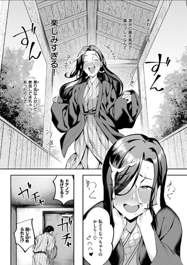 「遠慮しないで 私でイッパイ気持ちよくなってね♪」露出趣味の集いで出会った二人は意気投合し即結婚!!毎日変態プレイ三昧で夫婦仲も円満♪そんな二人のこの宿に来た目的は……《誰も来ないようなさびれた混浴風呂でハードセックスする》ため!温泉での野外4Pで二穴三穴ブチ〇されまくり!!コメディ風味を纏いながら実用性は一切損なわれていない超絶ハード和姦をお楽しみあれ♪
