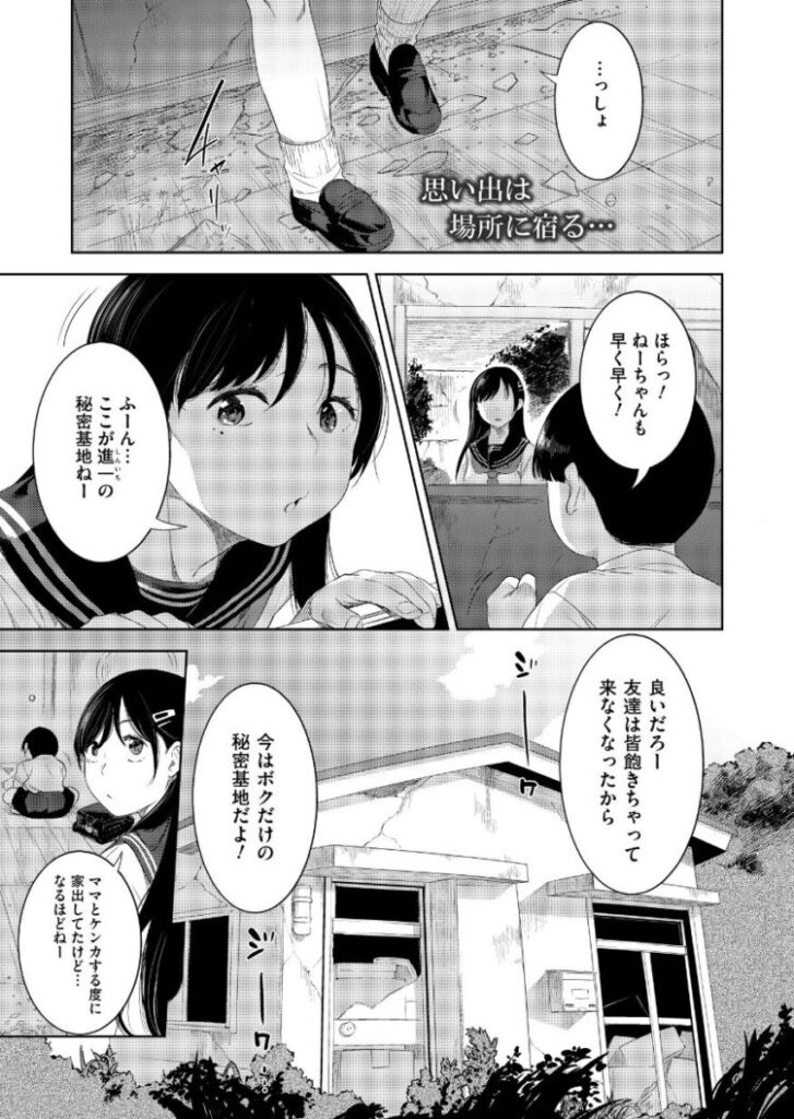 忘れられない日々にさよならを。「女の子の体とか…興味あったりする?」幼い頃よく遊んだ秘密基地。姉ちゃんと二人でイケないことをした秘密基地。姉弟の背徳を描いた青春物語!んめ先生、待望の最新作!