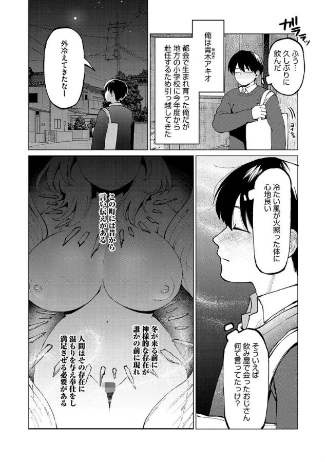☆ケモ神様(♀)×人間(♂)…とある街に伝わる古の神様・真冬様。冬の到来に合わせて現れる彼女の機嫌を損ねると、その冬は厳しい寒さと大量の雪・氷の塊が溢れかえるという…。そんな街に引っ越してきた青木の前にいきなり現れた彼女。『私をマンゾクさせないと大変なことになっちゃうよ〜』脅されるものの、街の安全を守るため、モフモフケモノの体を愛撫しお尻の穴まで舐め回す♪激しく交わるケモノセックスで彼女をマンゾクさせることができるのか???(できました♪)