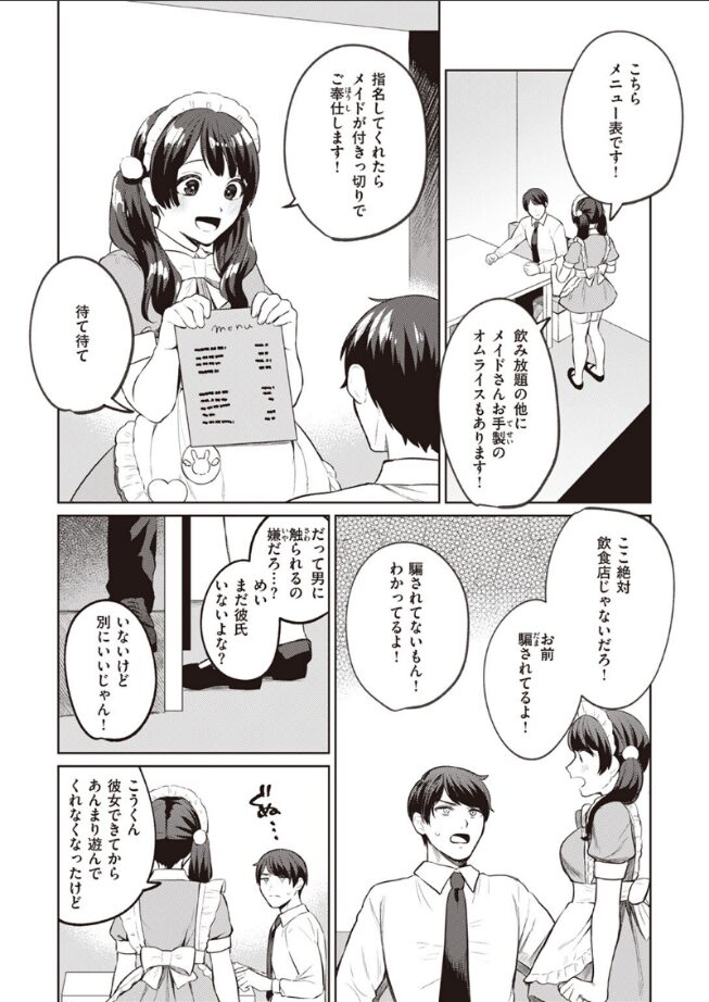 「折角来たんだからさ…もっと触る?」昔からほっとけなくて世話を焼いてきた7歳下の幼馴染・めい。最近、バイトを始めたらしいのだが、行ってみたらそこはいかがわしいことが出来るメイドカフェで……?めいが色んな男に触られて喜ぶ姿なんて想像できない……後悔する前にわからせてやろうと身体をまさぐるのだが!?