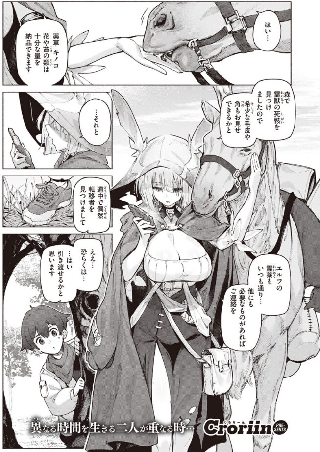 「異世界≪ここ≫での初めて……させてあげる……」旅の途中で転移した人間を拾った巨乳ハーフエルフのレンティア。転移者は今年で二十歳というが、長生きのハーフエルフにとってはまだまだヒヨッコ君。道中も≪世話焼きのお姉さん≫風を吹かし、面倒を見るように接していた。道すがら雨が降り、ふたりは山小屋へと泊まることになるのだが――!?バキュームフェラからの搾精ごっくん!! そのままリードされるようにナマ騎乗位で包まれて……!! 突然発情し、求めてくるレンティア。はたしてその理由とは……!?