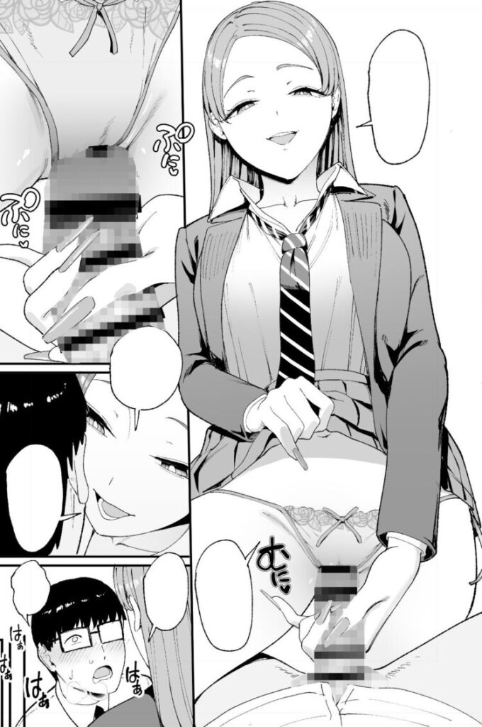 手コキのシーンの時の手の動きが繊細に描かれていて、ヒロインの宮下花音のテクニシャンぶりを完璧に表現できていましたし、作者の画力の高さに魅了されました。手コキの後で手に付いた精液を花音が舐め取るシーンもエロくて興奮しました。 手コキの後のフェラのシーンでは花音の舌使いや、バキュームすることで頬が窪んでいる表現が秀逸でしたし、オタク君のリアクションもしっかり描かれているので没入感がありました。 後半の騎乗位でのHシーンの時に激しく突き上げられて、これまで余裕の態度を取っていた花音が激しく感じまくるシーンが可愛くて思わずギャップ萌えしました。 終盤の寝バックや背面側位の体位でのHシーンでは、花音の股が大きく開かれていてエロかったですし、肉感的な女性器に男性器が激しく出し入れされている描写の迫力に圧倒されました。 |