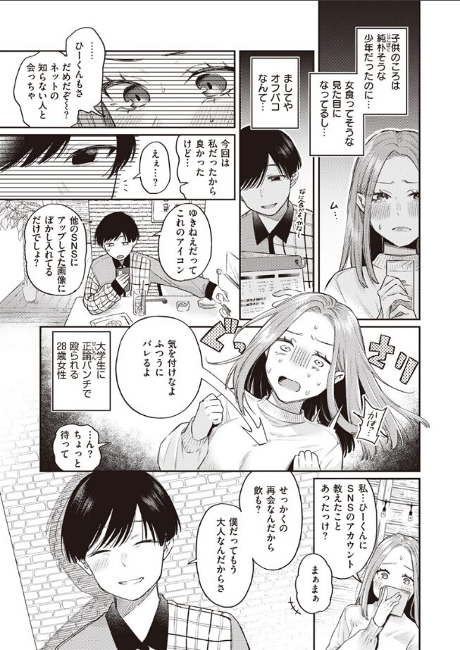 DMでオフパコ相手を募っていたところ、偶然にも昔近所に住んでいた男の子「ひーくん」と出会います。