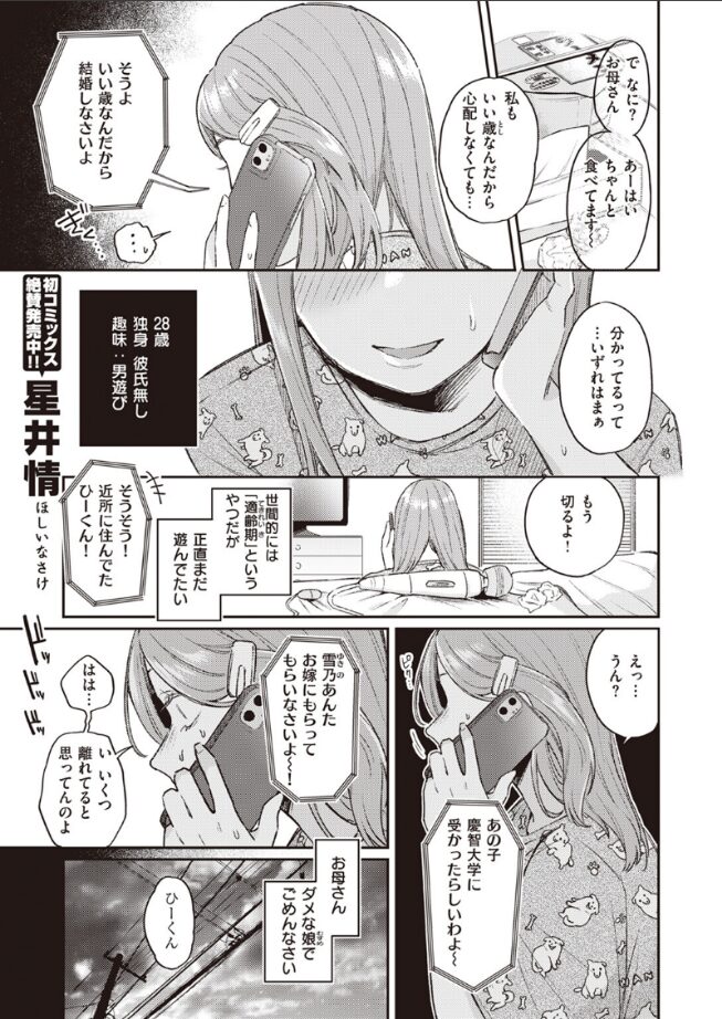 主人公雪乃は独身で男遊びばかりをしている28歳女性です。