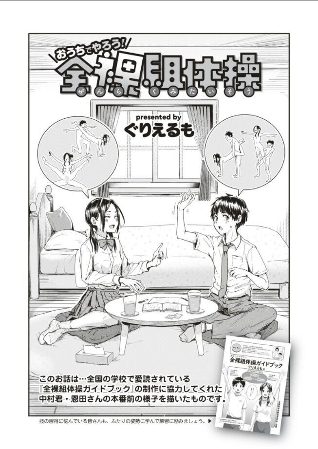 全裸組体操で良い演技をするためには、おちんちんの挿入は避けては通れません!大好評配信中『ぐりえるもの全裸シリーズ』『男女ペアでやろう! 全裸組体操ガイドブック』より、教科書モデル役で登場した二人の「自主練」を描いた作品です。