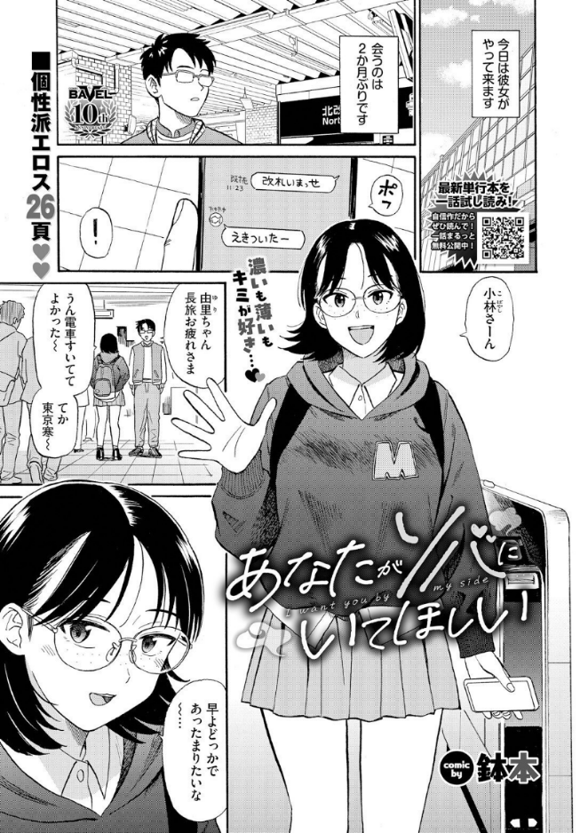 【関西弁ガールが乱れまくるイチャ甘オールナイトHっ!】実力派純情コミッカー・鉢本が描く、 遠距離カップルの恋情譚♪ 遠方に住む彼女の由里と久々に会うことになった小林。デート前に荷物を置こうと彼女のホテルについて行くと、部屋のベッドが二人用で…。彼女の押しに我慢できずセックスするが、一回だけでは飽き足らず今度は生でハメて…!?空いた時間を埋めるように求め合う二人の濃密ラブエロス!