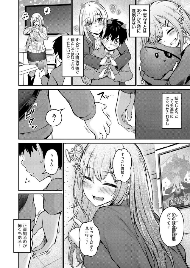 『「お姉ちゃん」じゃなくて「僕の彼女」って言ってくれても良かったんだよ?』しつこいナンパに困っている千恵ねぇを勇気を出して助けてから、千恵ねぇの様子がちょっと変。恋人同士ではない曖昧な関係にモヤモヤしてたけど、これってもしかして……!?そして騎乗位体勢になった千恵ねぇは、アソコで僕のおち○ちんを飲み込んでいき、動き始めた……。