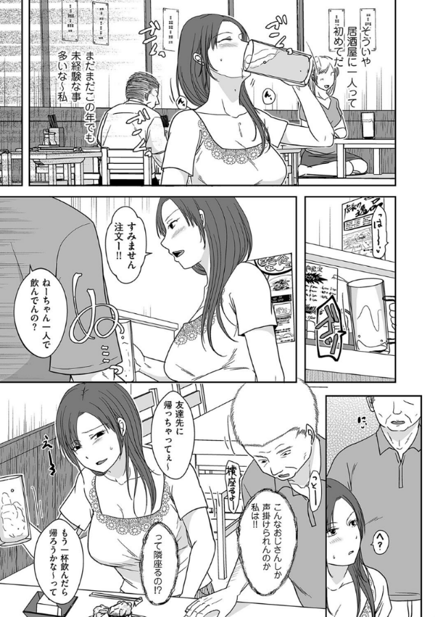 仕事が忙しく夫が夜の相手を全くしてくれません。どうにか夫の気分を盛り上げようと私から誘ってみますが「明日も忙しい」の一点張り。そんなある日、友だちとの飲み会があり久しぶりに居酒屋へ行くと、偶然居合わせておじさんにナンパされて……。