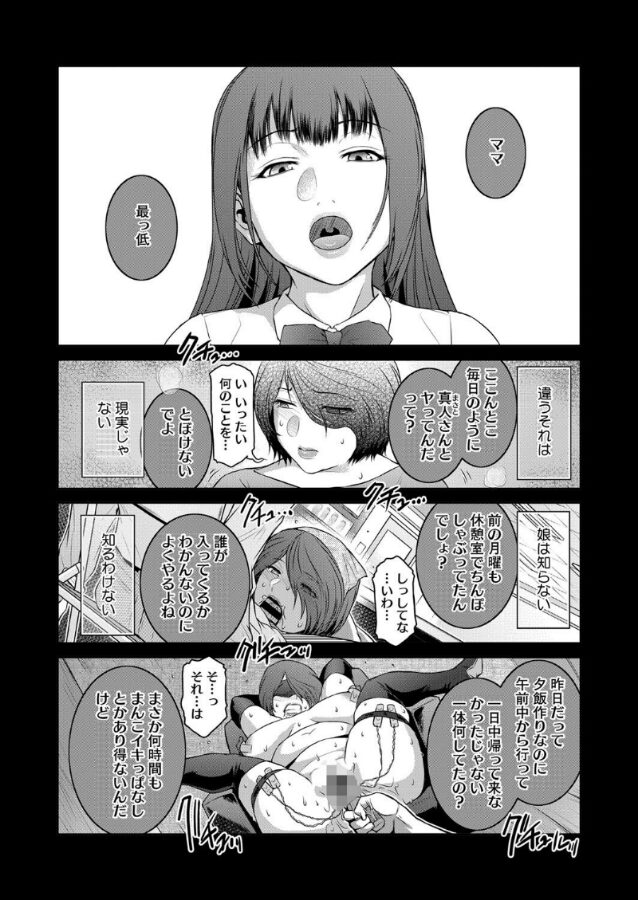 バイト先の若い男からの求愛を受け入れてしまった人妻。もしも娘にバレてしまったらと恐怖に震えながらも、彼とのSEXが頭から離れなくなってしまった。すっかりいいなりになってしまった人妻は、今日は彼からの命令で精液を口に含んだまま娘の前に向かわされる。