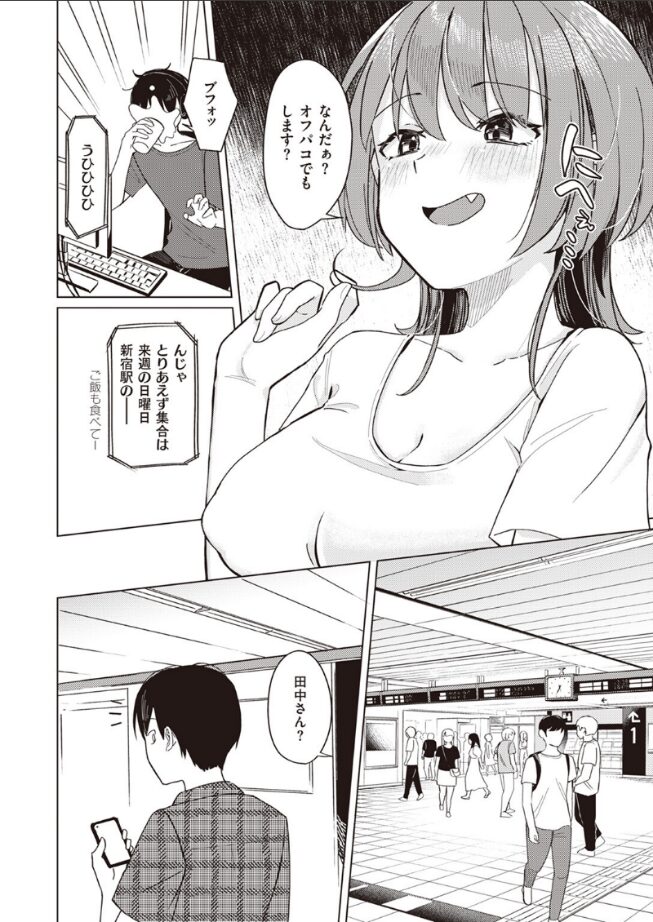 「なんだぁ? オフパコでもします?」大学生の田中(たなか)には仲の良いオンラインゲーム仲間の女のコ・≪まよつぼ≫ことまよちゃんがいる。彼女とはリアルで会ったことはないけれど下ネタも話せるような仲だ。そんなまよちゃんが就職活動で田中の近くへと来ることに!――オフパコでもします? なんていつものノリで彼女にからかわれつつも、実際に会ってみたらめっちゃ可愛いコが来て!?
