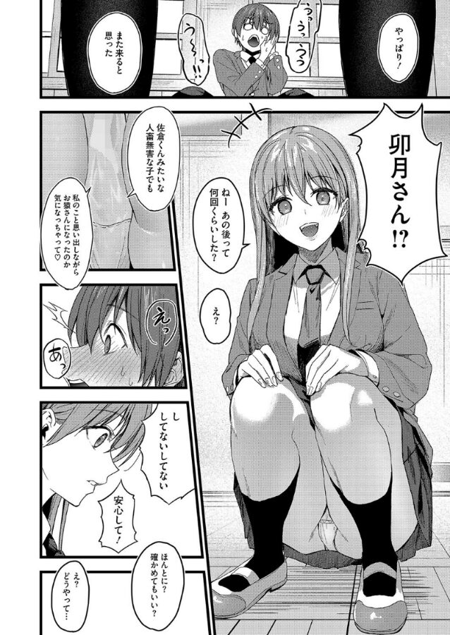 ある放課後、佐倉くんは密かに想いを寄せていた卯月さんと先輩が空き教室でセックスしている現場を目撃してしまった!! 翌日もショックを引きずったまま心ここにあらずな佐倉くん。偶然、昨日の教室の前を通りかかりフラフラと教室に入っていくと突然、背後から卯月さんに呼びかけられて──。