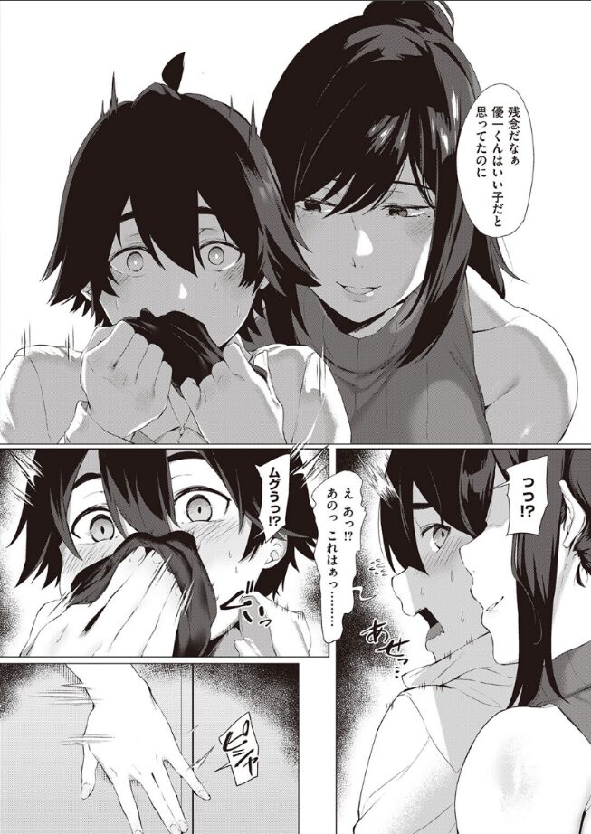 「はーい 現行犯のエロガキ確保♪」優一(ゆういち)が友達の夏樹(なつき)の家に遊びに行く理由の半分は、夏樹の姉・冬美(ふゆみ)さんがお目当て♪おっとり美人な冬美さんの爆乳と巨尻にムラムラしてしまい、夏樹から隠れるように入った洗面所で見つけてしまったのは――冬美さんの脱ぎたてパンツ!!思わずパンツを嗅いでしまったところを冬美さんに見つかってしまい、えっちなお仕置きタイムがスタート!?ドスケベおねえさんが手で、お口で、デカ乳で、ムレムレのアソコで、年下ち●ぽをオモチャにし尽くす!!