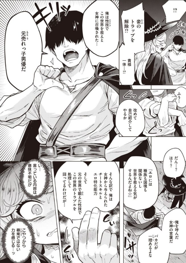 異世界転生ものの中でも設定がかなり斬新。 転生者は男優(明言はされてないけど、おそらくAV)だし、魔女の方は150歳で処女だし。 しかも魔女は処女である事がコンプレックスになっているという。 年齢が高い子が処女コンプってのは確かに良いものがある。ちょっと高過ぎる感はあるけど。 150歳とはいえ魔女っ子と子を付けたくなる見た目をしていて、分かりやすくツンツンした性格な魔女様が可愛いです。 男優に手ほどきを受けてから属性が変化して表情も変わるコマも大変に可愛い。 そりゃ150年も処女貫きとおしてきた子が初めて知ったら衝撃度も凄いだろうな。という感じ。 ちなみに、きちんと中出しされています。痛そうな描写なし。 コミカルな表現が多い作品ではあるものの、しっかりとエロ・可愛さ・面白さがミックスされている良作です。 |