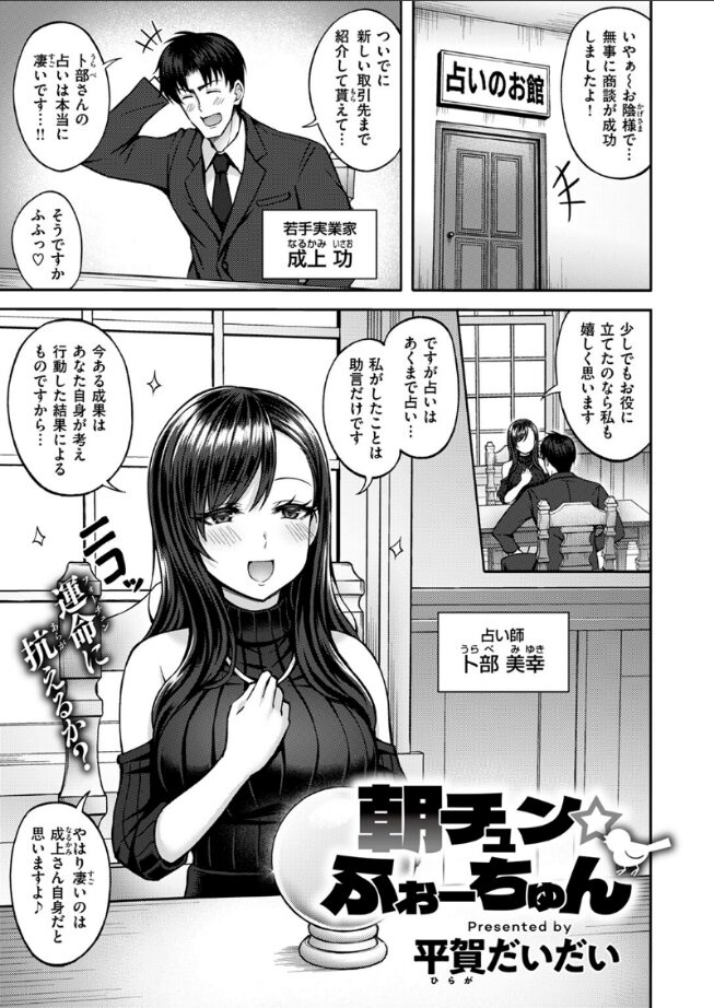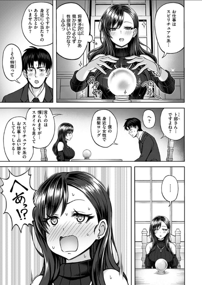 「カラダの相性を確かめるなら…キスだけじゃ足りないですもんね」美人占い師の美幸(みゆき)は、実はガチ目の超能力者。常連客の青年・成上(なるかみ)に将来の結婚相手を占う事を依頼され、結果は美幸を連想させる女性に!!焦る美幸だが、美幸に好意を持つ成上にグイグイ押されて!?