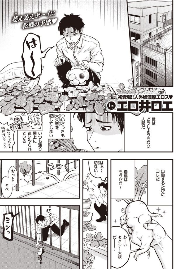 異世界転移した先で擬人化したマンドレイクとHをする作品。 主人公は、冴えないサラリーマンで不慮の事故により屋上から転落してしまいます。 一瞬死んだと思った主人公ですが、気が付くと、なんと女の子が自分の股間を主人公の口に押し付けているのです! 農家のおっさん曰く、女の子はマンドレイクで、体から分泌される蜜には回復効果があるようです。 助けてくれた農家のおっさんの家に住み込むことになった主人公は、農家の手伝いをすることになります。 その手伝いとは、マンドレイクとの中出しセックス! マンドレイクは、中出しによって受粉するというトンデモ設定です。 マンドレイクの見た目が愛らしく、正直言って一体欲しくなります! 最初は戸惑っていましたが、愛らしいマンドレイクの魅力にはまり、腰を振る主人公。 Hの内容はイチャラブで、キスをしながらのセックスなど、甘いプレイが楽しめる内容となっています。 |