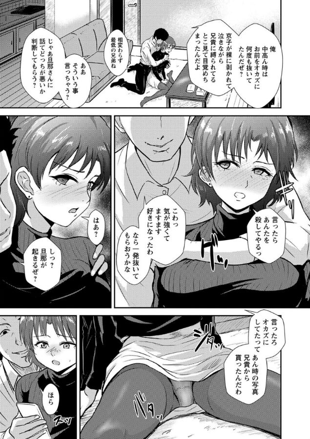 幸せな結婚生活を送っていたヒロインのもとへ夫が連れてきた一人の男。一目見て思い出したのは地元での忌まわしい輪●の記憶だった。札付きのワルと付き合っていた京子は先輩たちの性奴●として調教されており、その光景を興奮して見ていた弟が過去をネタに脅迫してくる…!?
