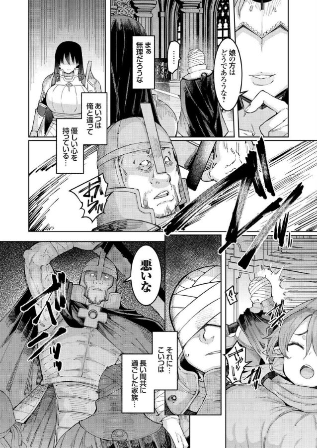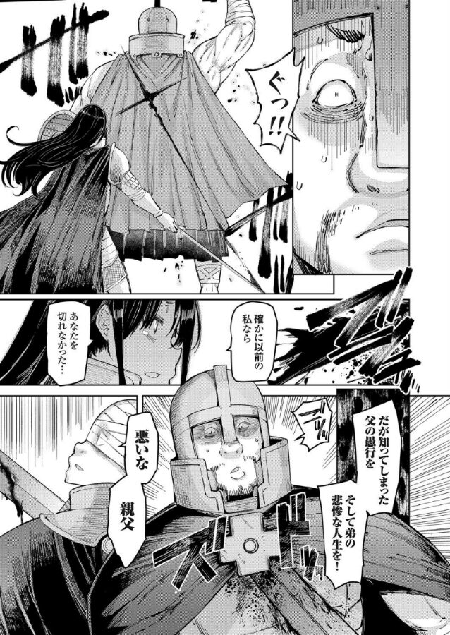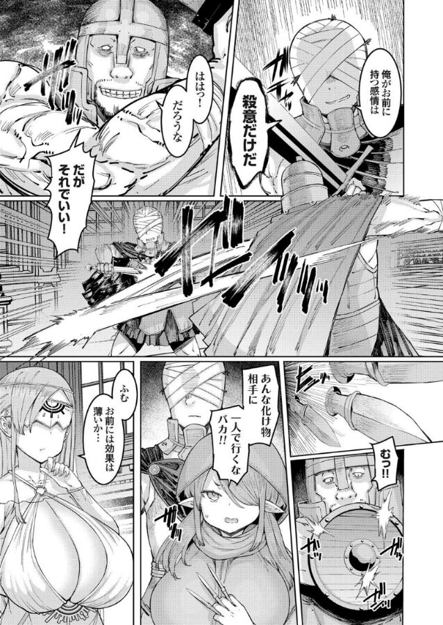 爆乳バーサーカー・EBAがゴブリンを統べる王の復讐エロスを濃密に描き出すファンタジー巨編連載クライマックスを迎える第7話!!人攫い村のリーダー(♀)・アウリが村からの脱走を試みた村娘を捕え酷いお仕置きをしていると、突然ゴブリンを率い頭を包帯でグルグル巻きにした謎の男・ヤノシュに襲撃され村は壊滅状態に。アウリはヤノシュから淫紋の呪いを受け性奴●にされ、ゴブリン達に連れ去られてしまう。ハーフエルフとして生まれ親に捨てられ、虐げられ続けたヤノシュの壮絶な復讐物語はこの村から始まった。人身売買を生業とする教会と裏で繋がっている修道院にいるクズ女、シスター・ホリィに復讐を果たしたヤノシュは止まる事なく、拷問好き女領主エルザの元を訪れ過去に受けた苦痛の意趣返しを図る。エルザも堕とし教会騎士のシノと一戦交えたヤノシュは不覚にも正体がばれ逃げようとするが、シノに引き止められ共に高所から転落してしまう。ケガをしたヤノシュをシノが手当てしお互いの境遇を話し、二人の関係性が判明するとシノはヤノシュのために生きるとなどと言い出す始末。そしてシノは自ら呪いを受け入れゴブリン軍団の一員となった。十分な力を蓄えたヤノシュ達ゴブリン軍団はド派手な決起集会を終え、遂に中央教会に討ち入る。だが教皇ヨナの前にガイウスが立ちはだかり、いよいよヤノシュは実の父親との最終決戦を迎えるのだった。果たして勝利の女神はどちらに微笑むのか…。