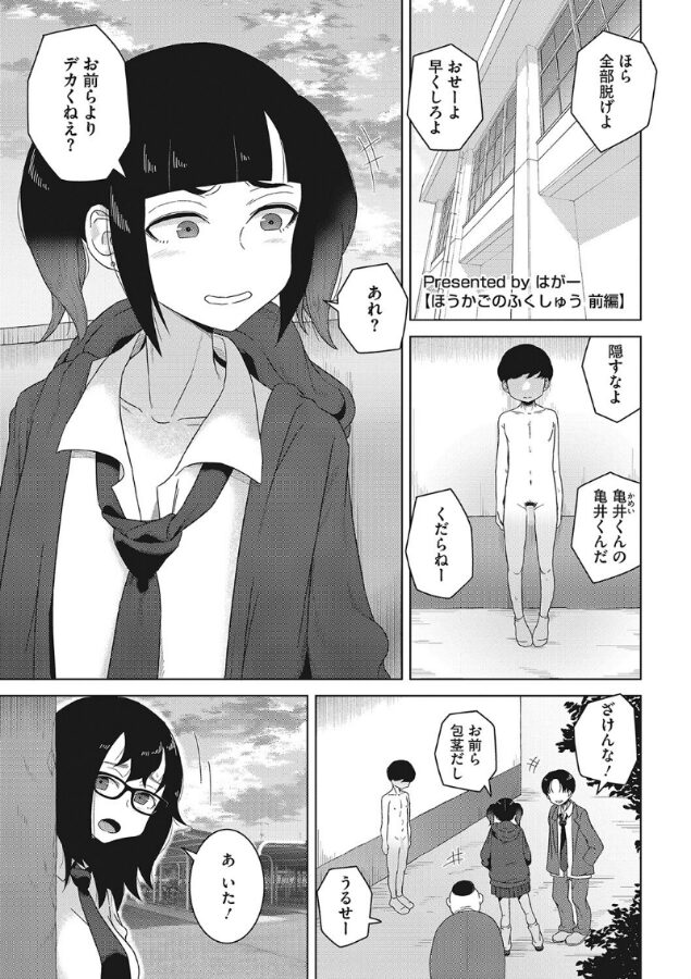 『セックスって…気持ち良いんだって』クラスメイトからイジメを受ける亀井くん。そんな彼を見かねて助けに入るヒロイン・犬居さんだったが、逆に巻き込まれてしまい被害を受けてしまった。しかし彼女の心には暗い気持ちではなく、復讐心が芽生えてしまい……。「亀井君、復讐しませんか?」。二人は協力しイジメっこの部屋を監視し始める……。――好き好きSEXとは一味違う、屈折系青春エッチ爆誕!<収録作品>ほうかごのふくしゅう 前後編/夕立は幼馴染の匂い/ふたりの間の白い靄