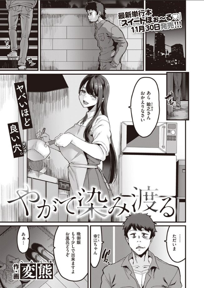 ある日、帰宅したアパートにエプロンをしたJKがご飯を作って待っていて、想定外の不審者に通報するか迷うも、空腹と可愛さのあまりついつい受け入れてしまった結果、同棲する流れになってしまうところが斬新だと思いました。 面識はないのになぜか名前を知っており、食の好みやその日の疲労感まで把握しているという異常っぷりに、思わずストーカーかと尋ねてしまい、それを躊躇することなくさらりと認めるところも潔くて面白かったです。 ギャル系の見た目ではなく、真面目で大人しそうなのに巨乳で肉感があり、母性を感じさせるようなスタイルや仕草、言動の誘惑に思わずがっついてしまい、それをたしなめながら受け入れるところも妙にエロいと感じました。 若くムチムチとした身体は魅力的で、仕事で疲れて帰宅する敏之を精神面でも肉体面でもおもてなしの精神で受け入れてくれるJKに心も身体もどっぷりハマっていくものの、彼女が最強ストーカーだという側面を考えると、自分なしではいられなくすることが最大の目的であり、罠なのかなとも思いました。 |