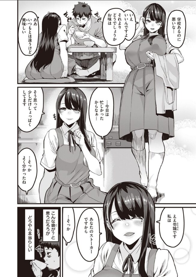 「ええ勿論です。私はあなたのストーカーですから」突然現れた謎の不法侵入者。しかもムッチリ可愛い現役制服ガール。どうしてそんな娘がこんなところに……?なにをしても拒まない都合の良すぎるミステリアス少女とねっとり淫らな同棲性活。……ヤバいほど良い穴≪オンナ≫にどっぷりハマっていく。