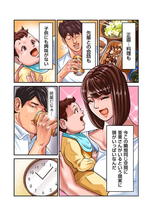 男は会社の先輩の奥さんに憧れていた。「可愛いお子さんの顔が見たい」その男は適当な口実を作り、先輩の家を訪れた。だが先輩は夕食で少し飲んだだけで寝入ってしまった。そして奥さんと二人きりになった瞬間、男の本能が暴走を始める――。「ああ、このエロい体にブチ込みてぇ!!」