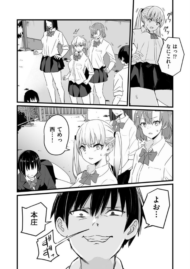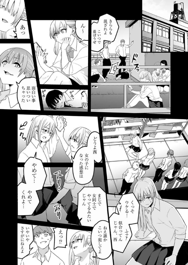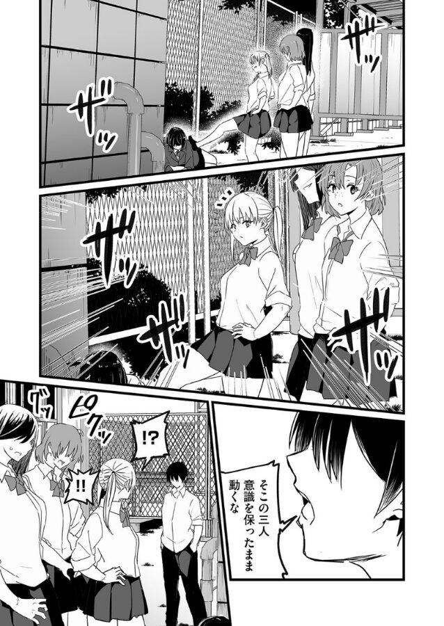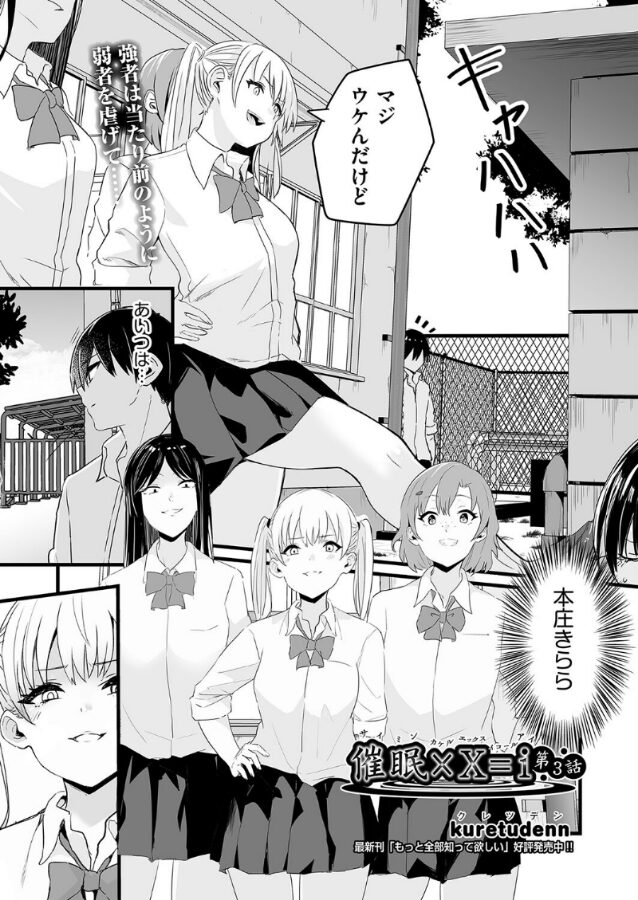 発する言葉の通りに周りを動かせる能力をもつ西くん。女子をいじめてる途中の本庄きららを見かけ、昔の仕返しを思いつく。いじめられていた女子を逃がした後、きららの取り巻きのレズカップル茜と若菜のアソコを舐めるようにきららに命じ、2人にきららを押さえつけさせ処女ま●こに膣奥射精!!もちろんレズカップル2人も交互に男の肉棒を味合わせる!!