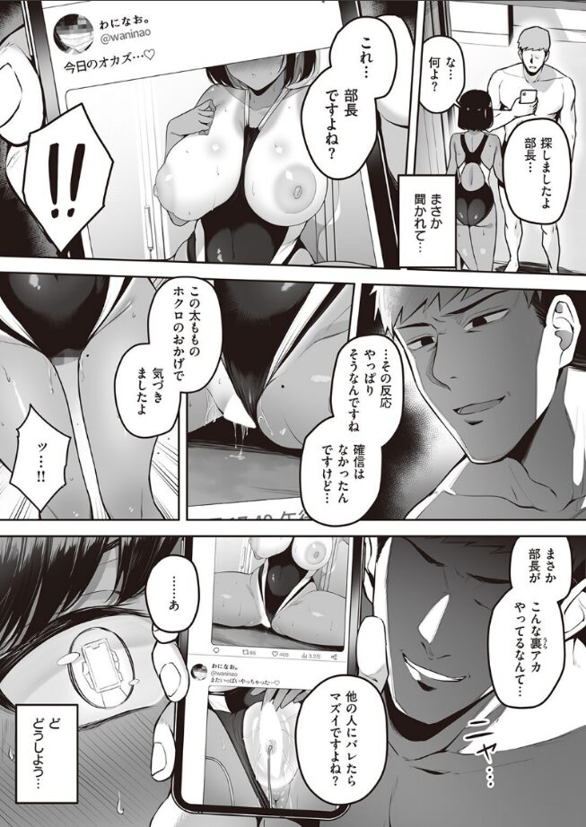 「私のこと…グチャグチャに●して…♪」水泳部の部長・赤嶺なお(あかみねなお)は、日頃の溜まったストレスを更衣室オナニーで発散するド変態!事後の姿をSNSの裏アカに投稿していたら、ヤリチンと噂の新入生・川本(かわもと)にバレていて――!?エッチな妄想が現実に! 本気の種付けセックスで敗北絶頂!! クソM女の一部始終♪