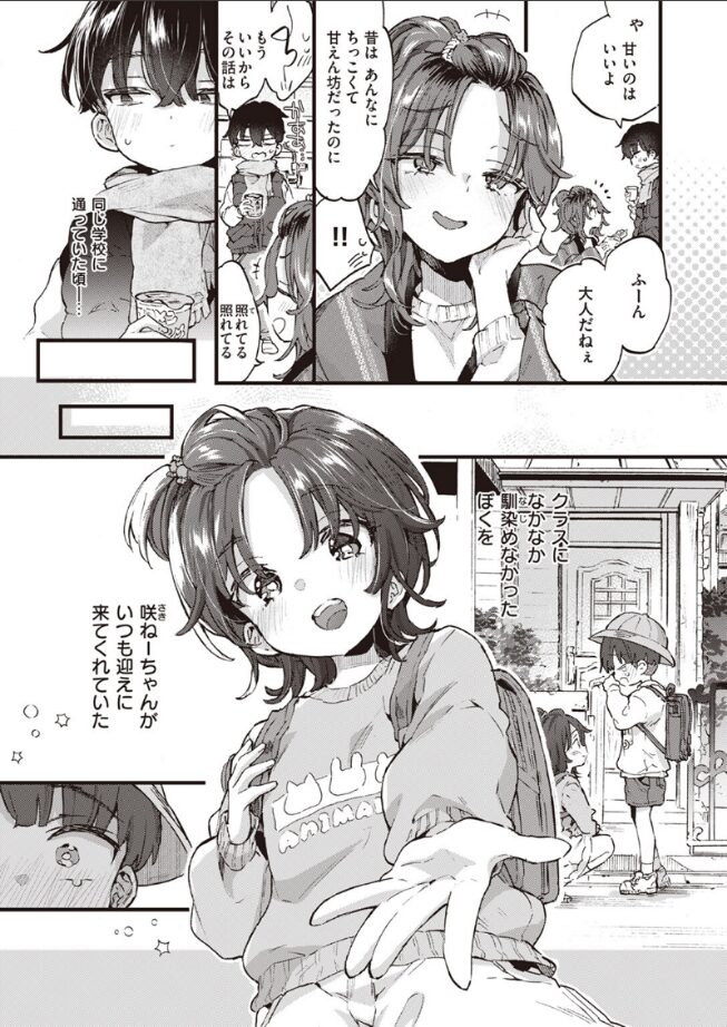 「…ほんっと昔っから可愛いんだからっ…っ」駄菓子屋のねーちゃん・咲(さき)と辛い食べ物が好きな男子・樹(いつき)は幼馴染。駄菓子屋はみんなが集まる場所になっているが、樹はお菓子よりもねーちゃんを目当てに独りで訪れることも多かった。そんな樹の気持ちなど、きっと、とっくにお見通しの咲ねーちゃん。気持ちは互いに膨らむばかり。ある日、いつものように辛いヌードルを購入する樹に、奥の小上がりで食べてって良いよと提案。ドキドキしながらそれに応じた樹だったが、ねーちゃんは「味見」すると言って顔を近づけてきて――