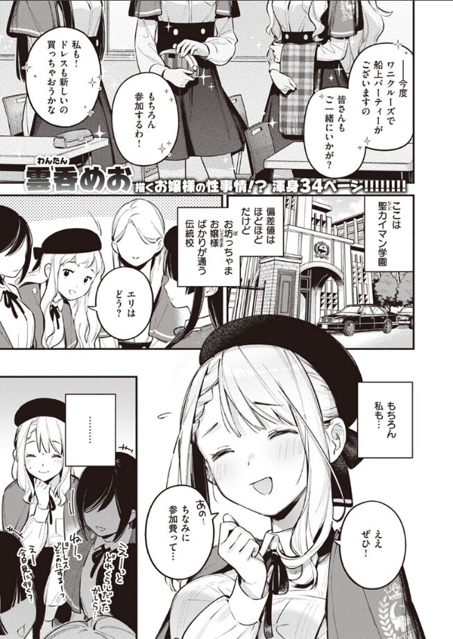 「あず…ま ちゃんと…きもちい…っ?」超・お嬢様学校に通う普通の家庭の普通の女のコ・星乃エリ(ほしのえり)。周りに合わせるためバイト三昧の日々を送っていたが、どれだけ頑張っても時間が足りず、ついに危険なパパ活へ手を出すことに。(…やっぱり、ヤバいのかなこれって…)迷うエリの前に、エリの秘密(弱み)を知っている同級生の東(あずま)が現れる。東は自分がバイトする代わりに、エリとのエッチを所望してきて……。