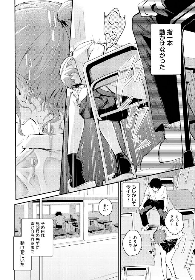 ただ、大人漫画の世界では意外とあるシチュエーションとも感じました。普段は真面目そうな女子がクラスでも地味で大人しそうな男子に自分のオナニー姿を見せてそれで興奮するというのは割とあると感じました。