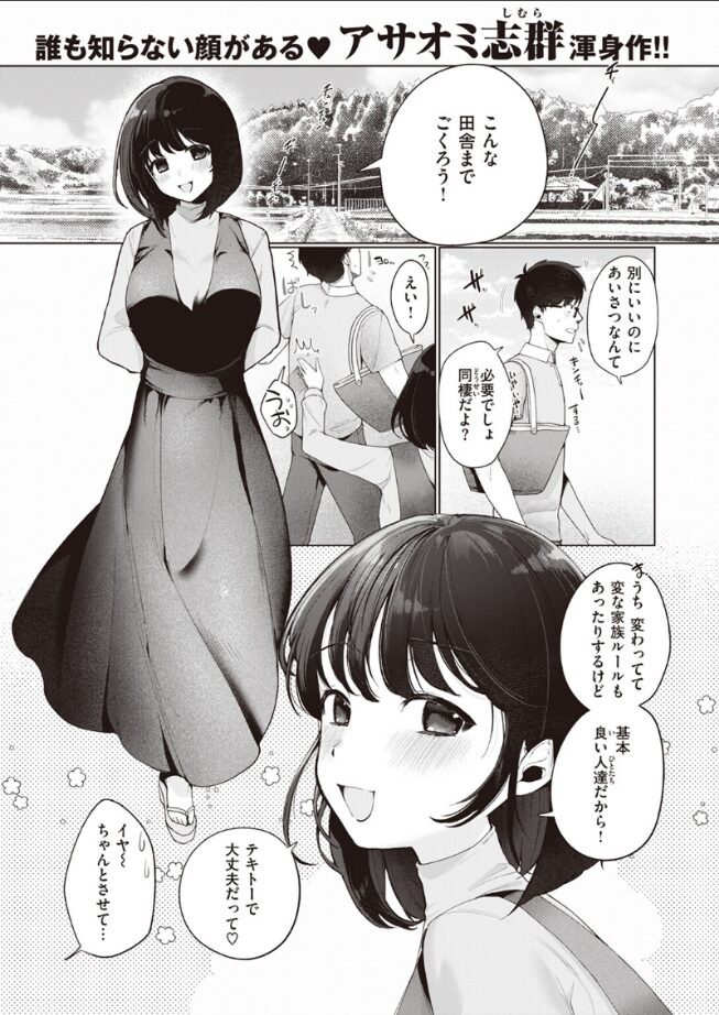 アサオミ志群の家族もの、やっぱり強烈な興奮を催してくれるね。当たり前のように家族セックスしてる光景が強烈。 田舎の家族ルールってどこでもあるものだけど、あまりにも常軌を逸してる貞操観念で、のっけからインパクト絶大。まずパパ相手にハメて感じまくってるのが衝撃。 冒頭の出迎えはいかにも人の良さそうな幸せ一家だったのに、近親相姦してる光景とのギャップがすごかった。彼氏の驚き反応も納得だわ。 弟とも夜這いしてるけどこちらの興奮度のほうが上かな。激しすぎる性行為で本気出しちゃってる感じ。 見た目普通なカノジョがただ無軌道な性欲に身を任せ家族とヤリまくるだけで十分に興奮できた。人は選ぶ作品だけど、ヌキポイント多すぎでコスパ良すぎた。 |