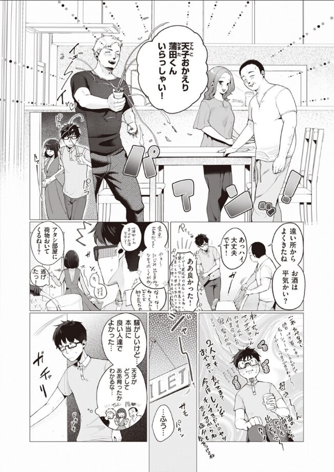 彼女と同棲することになり、ご両親に挨拶だけは済ませておかないとと天子の実家を訪れた蒲田くんが、彼女の家のちょっとどころではない非常識な瞬間に、腰を抜かして動けなくなるなってしまうところが面白かったです。 彼女からちょっと変わった家族ルールがあるとは聞いていたものの、訪れた実家ではご両親と弟に大歓迎で出迎えられ、彼女が朗らかな性格に育った理由がわかった気がすると納得した直後に父親との合体シーンを見せつけられ、奈落の底に突き落とされる展開が最高でした。 しかも、ようやく二人きりになれた夜には弟が天子の部屋を訪れ、蒲田くんが隣に寝ている横で…というNTR状態に、ドキドキとパニックで気が狂いそうになるところもよかったです。 大人になってから、他所のお家のルールと自分の家のルールの違いに驚くことはあっても、家庭内エッチが通常化してしまった天子宅ではそれが非常識だとは認識しておらず、隠そうともしていないあたりに蒲田くんの苦悩が伝わってきて、郷に入っては郷に従えと自身に言い聞かせるところに吹き出してしまいました。 |