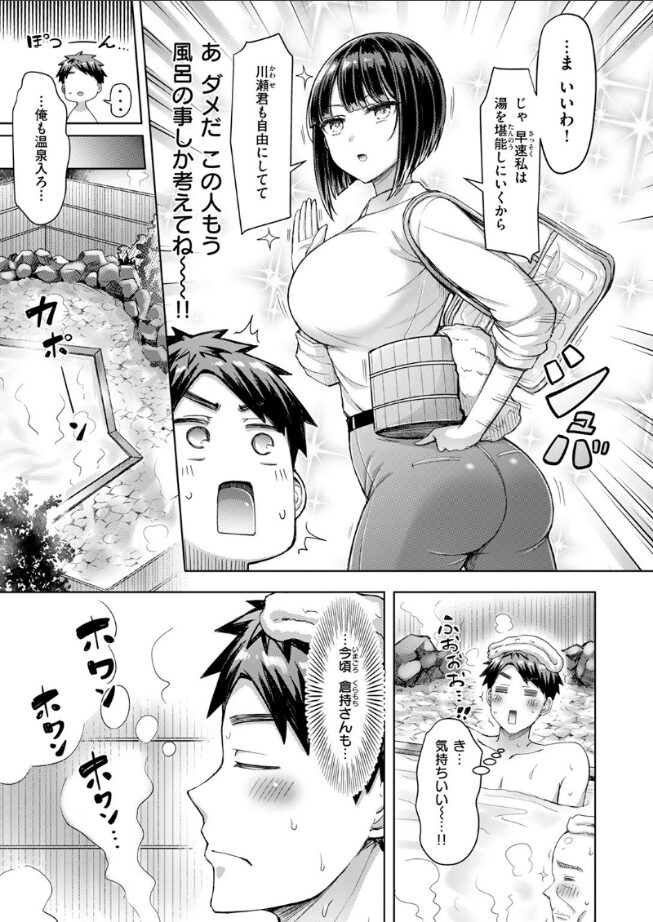 女上司ヒロインの倉持と出張に出かけた時に温泉旅館に宿泊して、酒で酔った勢いでセックスしてしまうストーリです。 可愛い浴衣を着てHシーンが行われるので和服フェチの方も満足できる内容でしたし、手マンや乳首攻めをされていくうちに倉持の巨乳が浴衣から露出していく様子が非常にセクシーでした。 普段押さえ込んでいた性欲を開放するかのように倉持が激しく騎乗位してくるシーンが迫力満点で良かったですし、下からペニスで激しくピストンされている膣内の様子が断面図で丁寧に描かれていてHシーンのクオリティが高かったです。 中出しされた瞬間に倉持が巨乳を揺らしながらアクメする姿がエロ可愛かったです。 |