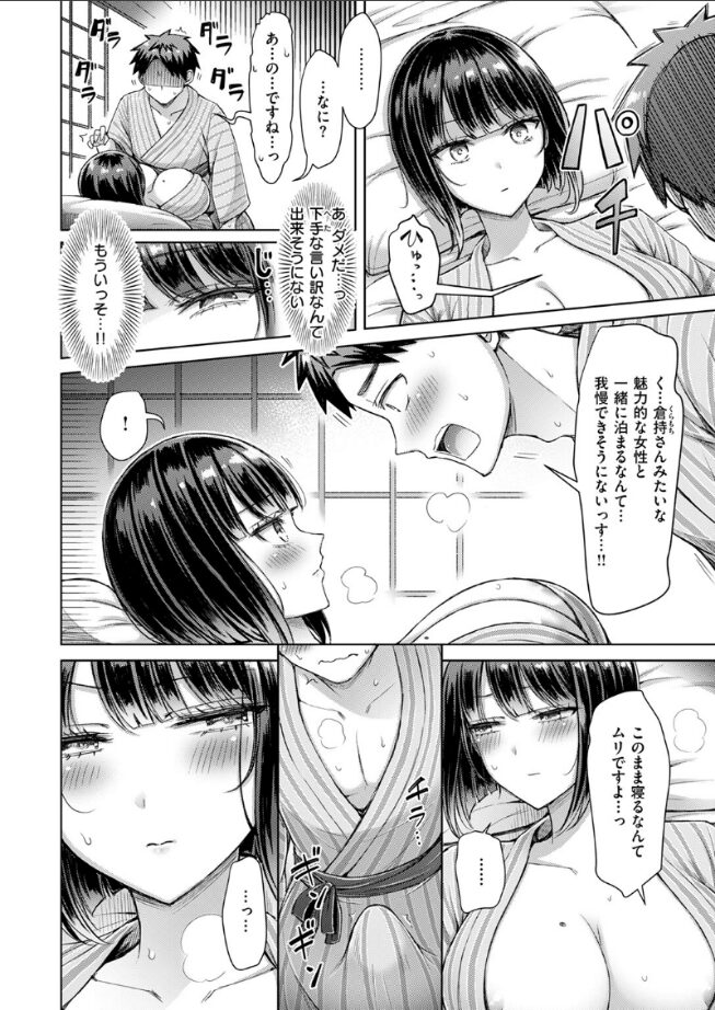 クールなシゴデキ上司の倉持さんの「表情」がとても良い。 一気に表情が崩れて豹変という感じではないのだが、ちらほらと見え隠れする可愛らしい表情だったり、クールな感じが崩れる瞬間みたいなのが非常によく描けている。 これぞクール系女子の醍醐味!と言った要点を押さえてる感じ。 旅館に泊まることになったというシチュエーションもとてもよく生かされており、行為シーンが和室とのもそそる。 ボブカットのシゴデキOLと和室の相性がこんなに良いとは思わなかった。 浴衣がはだけた胸元にホクロを発見したりと、全体的に細かな描写が良い作品。 |