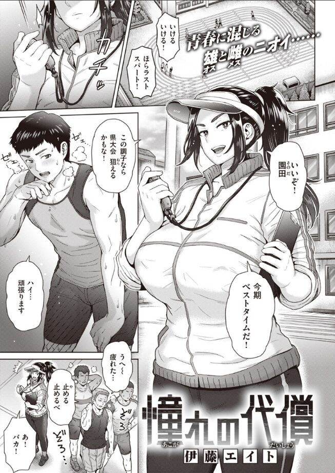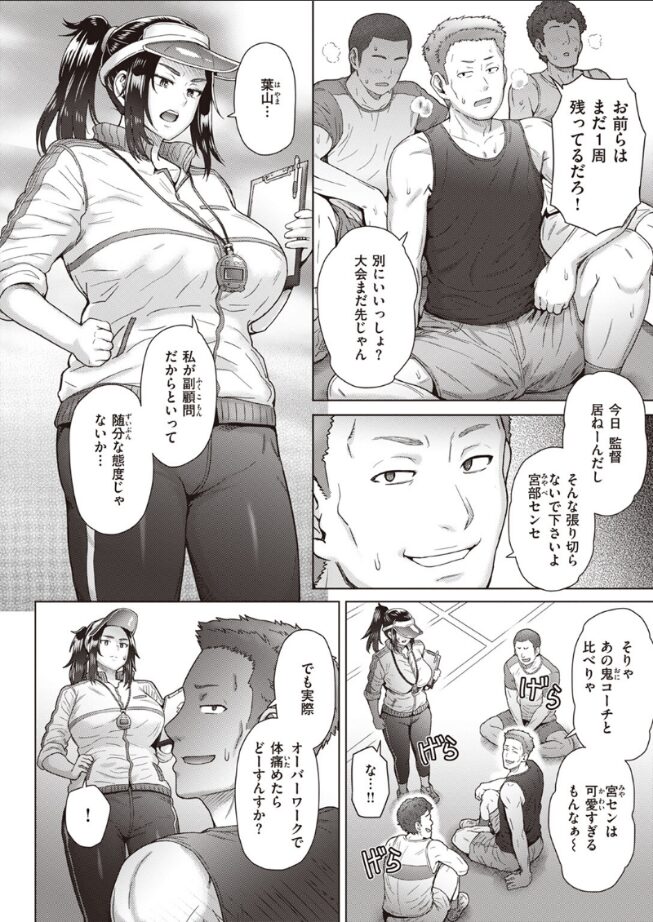 陸上部の顧問をしている女教師ヒロインの宮部が、陸上部の部員たちと激しく乱交セックスする背徳的なシーンに興奮しましたし、部員たちのペニスを舐め上げている時の宮部の表情がエロ可愛くて萌えました。 普段は凛々しくて強気な態度を取っている宮部が部員たちに激しく正常位やバックでピストンされて、可愛く喘ぎまくっている様子にギャップ萌えしましたし、膣の奥をピストンされてアヘ顔になりながら何度も潮吹き絶頂している宮部の姿が、迫力ある絵柄で表現されていて見ごたえがありました。 |