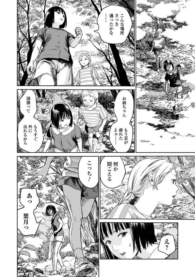 祖母から決して入ってはいけないと言い聞かせられていた山に、飼い猫を追いかけてずんずん入り込んでいく妹を制止することができず山中に迷い込み、声のする方に進んだ結果、とんでもないしきたりが待っていたところに恐怖を覚えました。
