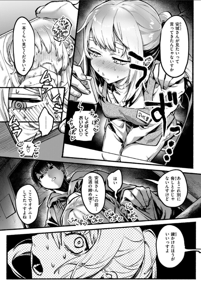 決して脅しではない、誰にも言わないと言いながらも、フェアという言葉を使う松田くんに対し、動画を見てムラムラのスイッチが入ってしまった安城さんが、口止めするためかのように見せかけて、自身の溜まりまくった性欲を解消しようとするところがよかったです。