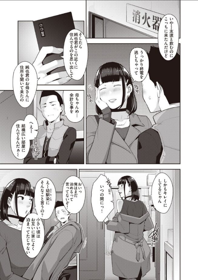 「今晩泊めてくれない?」離婚したての幼馴染・希美(のぞみ)が家の前で待っていた。終電を逃したという彼女はどこか寂しそうで、そして気のせいかメスのニオイを漂わせていて……。ずっと腐れ縁だったふたりが今夜、男女の関係へ。