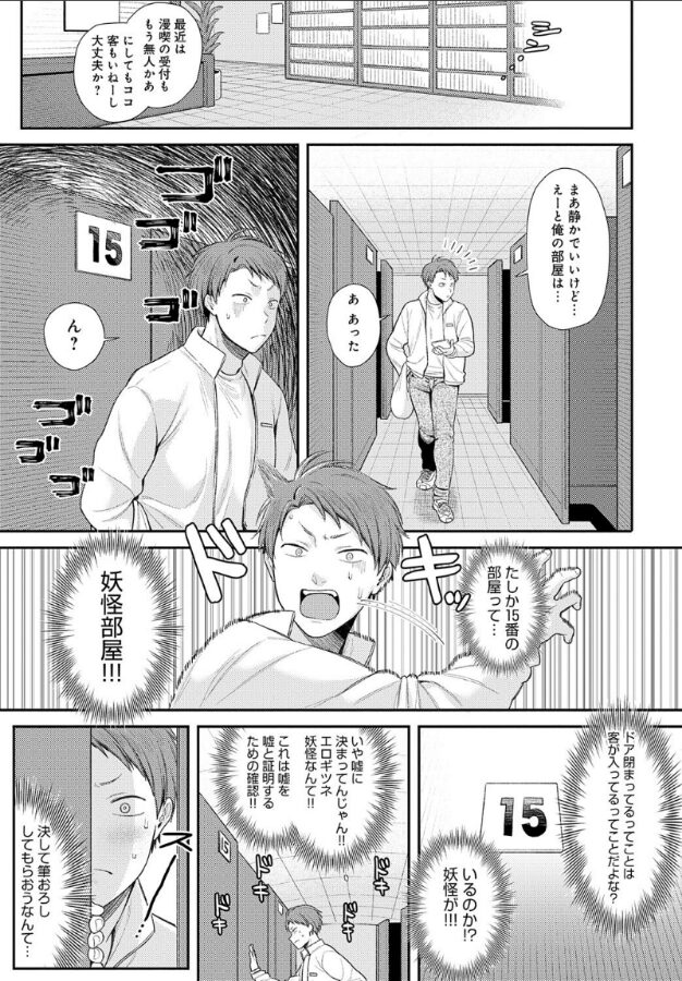 漫画喫茶に住み着いているキツネの妖怪の黒子から誘惑されて、精液を搾り取るような激しい童貞卒業セックスをさせてもらうストーリーです。