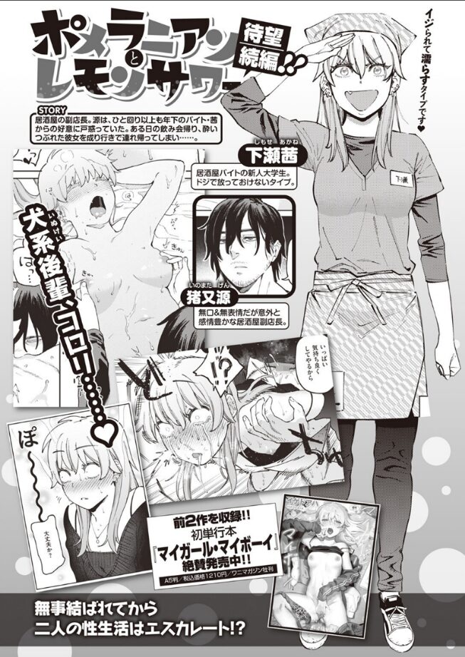 「先パイの大きくなってる〜♪ カワイイ〜♪」居酒屋でバイトしている元気な犬系女子大生・茜(あかね)ちゃんと、その居酒屋の副店長として働く男・源(げん)。紆余曲折を経て結ばれた二人が、今晩はじめてのおうちデートに臨む!! 一緒にお風呂でイチャイチャしてたらアソコもビチャビチャに……♪無事結ばれてから、ますます性生活はエスカレート!!※ふたりの馴れ初めは単行本『マイガール・マイボーイ』を要チェック!!
