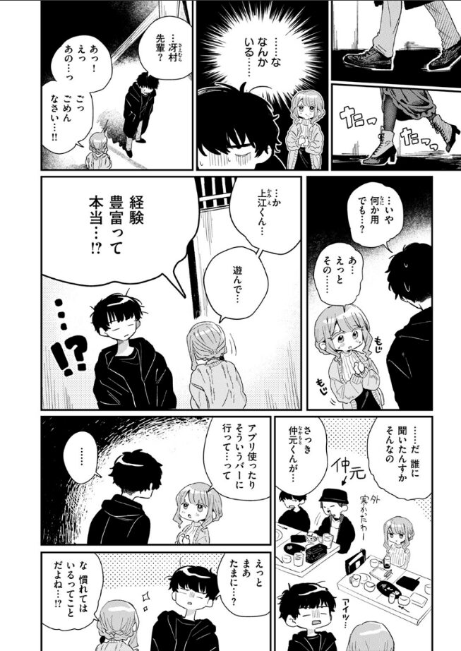 この作品は、ストーリーの序盤から物語が面白かったので、すぐに話に引き込まれました。 冴村先輩が後輩の上江くんの前で、またつき合っていた男性と別れたと言った時から、上江くんのことが気になっていたと思います。二人が店を出た後に、冴村先輩が上江くんの経験が豊富であるか尋ねた後で、彼にお願い事をする場面は、とても驚かされました。 上江くんも先輩にこのようなことを突然言われて、非常に動揺したと思います。自分の悩みを解決するために、上江くんに体の頼みごとをした冴村先輩は、とても困っていたのだと思います。安心感で払拭することはできないと言った上江くんの気持ちも非常にわかります。 最終的に冴村先輩が、上江くんと抱き合ったことで、今まで感じることができなかった快楽を感じることができたので、とても良かったと思います。 |