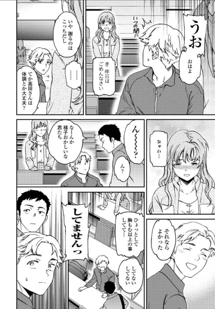 誰にでも敬語な高田さんは内気で恥ずかしがり屋。岩崎は彼女と仲良くなりたくて宅飲みに誘ったのだが…うたた寝から覚めた時に思わず彼女の胸を揉んで平謝りしたのだが…揉まれた方の高田さんは、なぜか顔を赤くしてて◇……Cuvie「ふわふわ。」