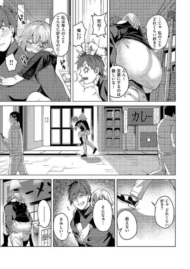 この漫画の主人公である沙織と隼人はとても理想的なカップルであると思いました。 二人の記念日を隼人が忘れてしまい、沙織がヤケ酒を飲んでいる時に、山田さんに教えられて隼人が沙織のことを迎えに来たシーンは、とても微笑ましいと思いました。隼人に対して素直になれなかった沙織が、かれにおんぶされている時に、彼から好きだと言われる場面はとても魅力的です。 その後に、自分のことがどれだけ好きかと隼人から聞かれた沙織が、彼の好きなところをたくさん言ってしまうところも、この作品の好きな場面です。仲直りをした二人が抱き合った後に、沙織の腰が痛くなってしまい、それを隼人のせいにしてまた喧嘩が始まりそうになるところも、この二人らしくて面白いと思いました。 |
